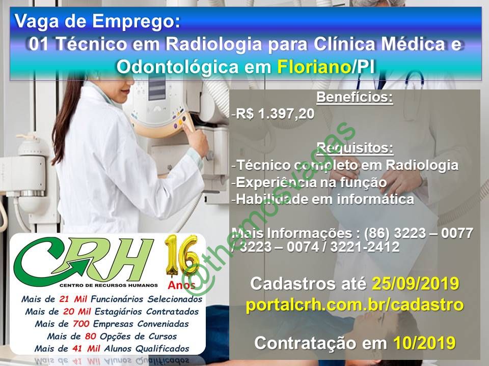 Técnico em Radiologia / 01 vaga(s) / Floriano – PI
