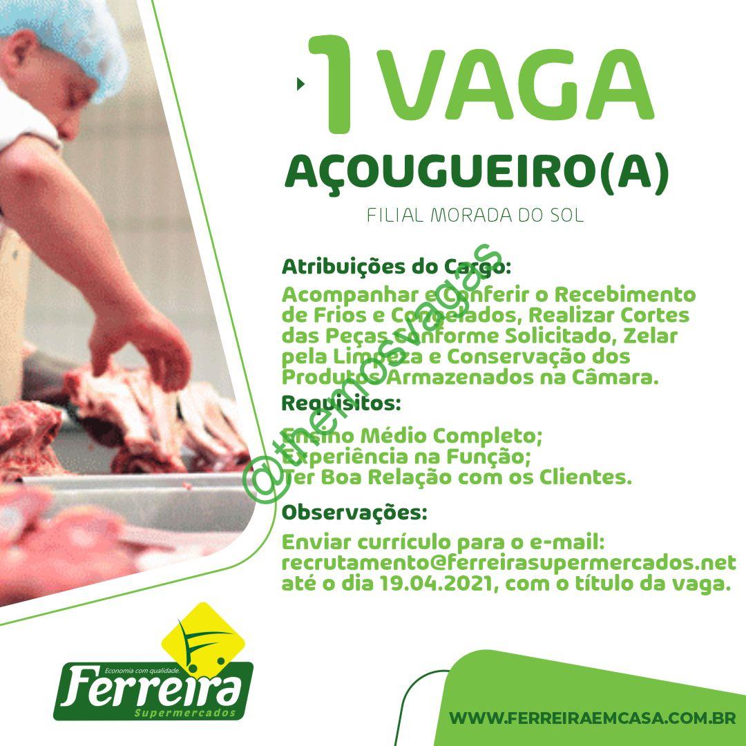 – Interessados(as) e que atendam ao perfil solicitado acima, devem enviar o currículo até 19/04/2021 para o e-mail recrutamento@ferreirasupermercados.net contendo no título/assunto “Açougueiro(a)  THE