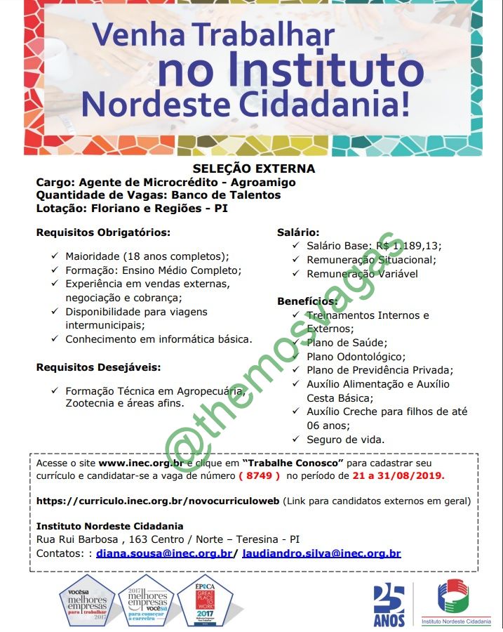 Agente de Microcrédito / 01 vaga(s) / Floriano – PI