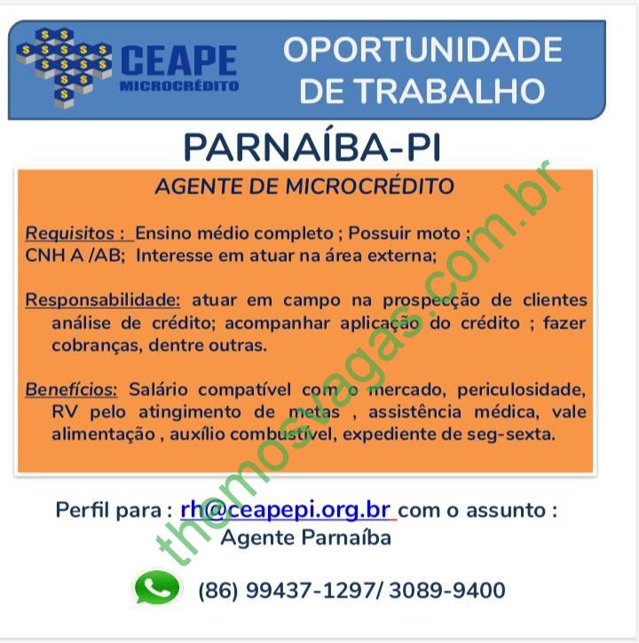 Interessados(as) e que atendam aos requisitos exigidos na imagem acima devem enviar o perfil profissional, contendo no título/assunto do e-mail “Agente Parnaíba”, para rh@ceapepi.org.br .