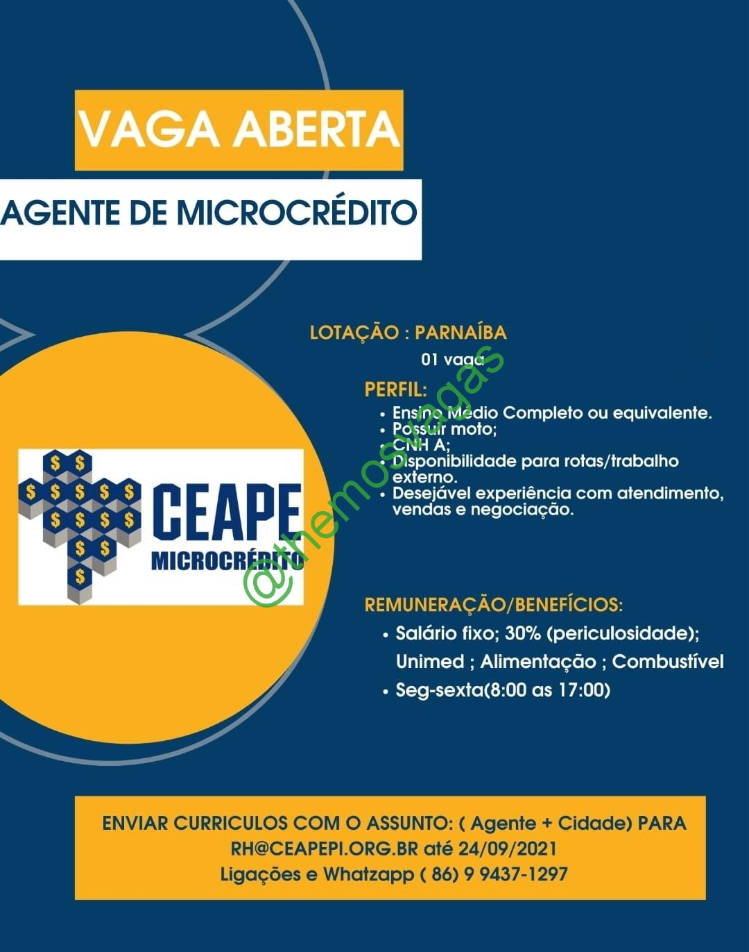 Agente de Microcrédito | Parnaíba – PI | 01 vaga(s)