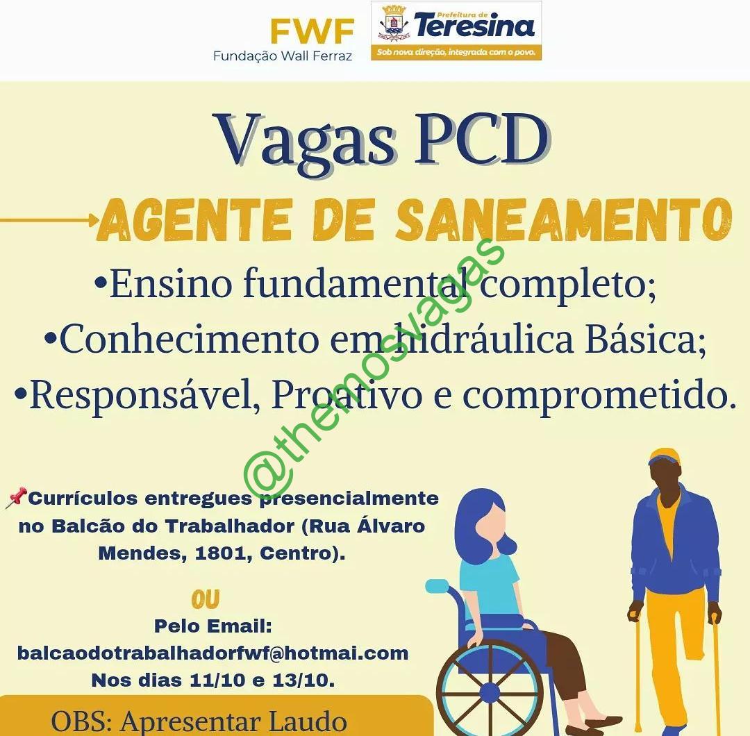 – Interessados(as) e que atendam ao perfil solicitado acima, devem enviar o currículo nos dias 11/10/2021 e 13/10/2021 para o e-mail balcaodotrabalhadorfwf@hotmail.com, contendo no título/assunto “Agente de Saneamento – THE“ ou no endereço Rua Álvaro Mendes, N° 1801, Centro, Teresina – PI.