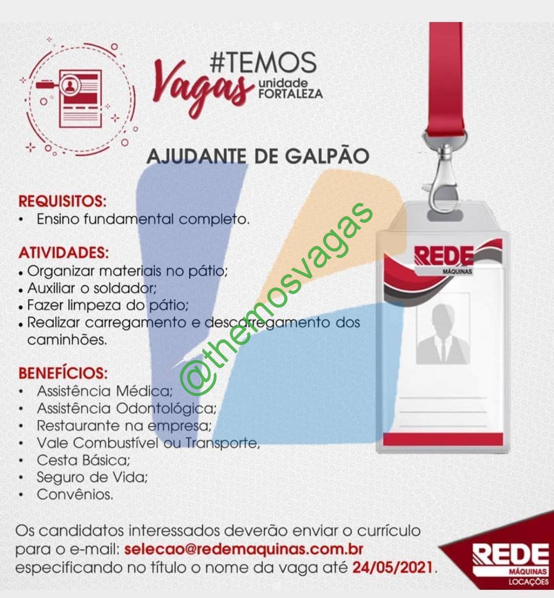– Interessados(as) e que atendam ao perfil solicitado acima, devem enviar o currículo até 24|05|2021 para o e-mail selecao@redemaquinas.com.br, contendo no titulo/assunto “Ajudante de Galpão – FOR