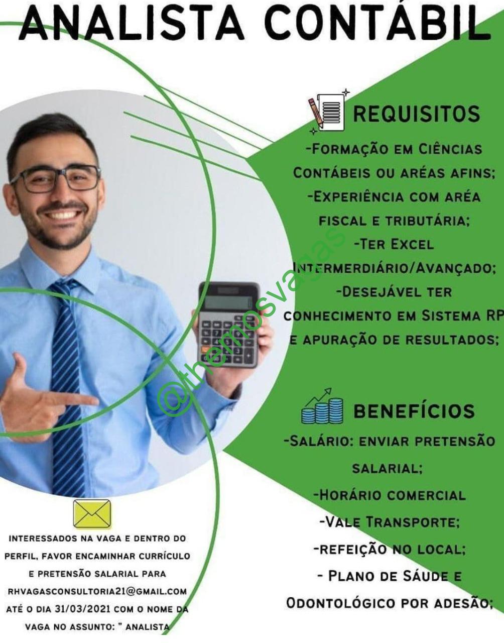 –  Interessados(as) e que atendam ao perfil solicitado acima, devem enviar o currículo até 31/03/2021 para o e- mail rhvagasconsultoria21@gmail.comcontendo no título/assunto “Analista Contábil – FOR”.