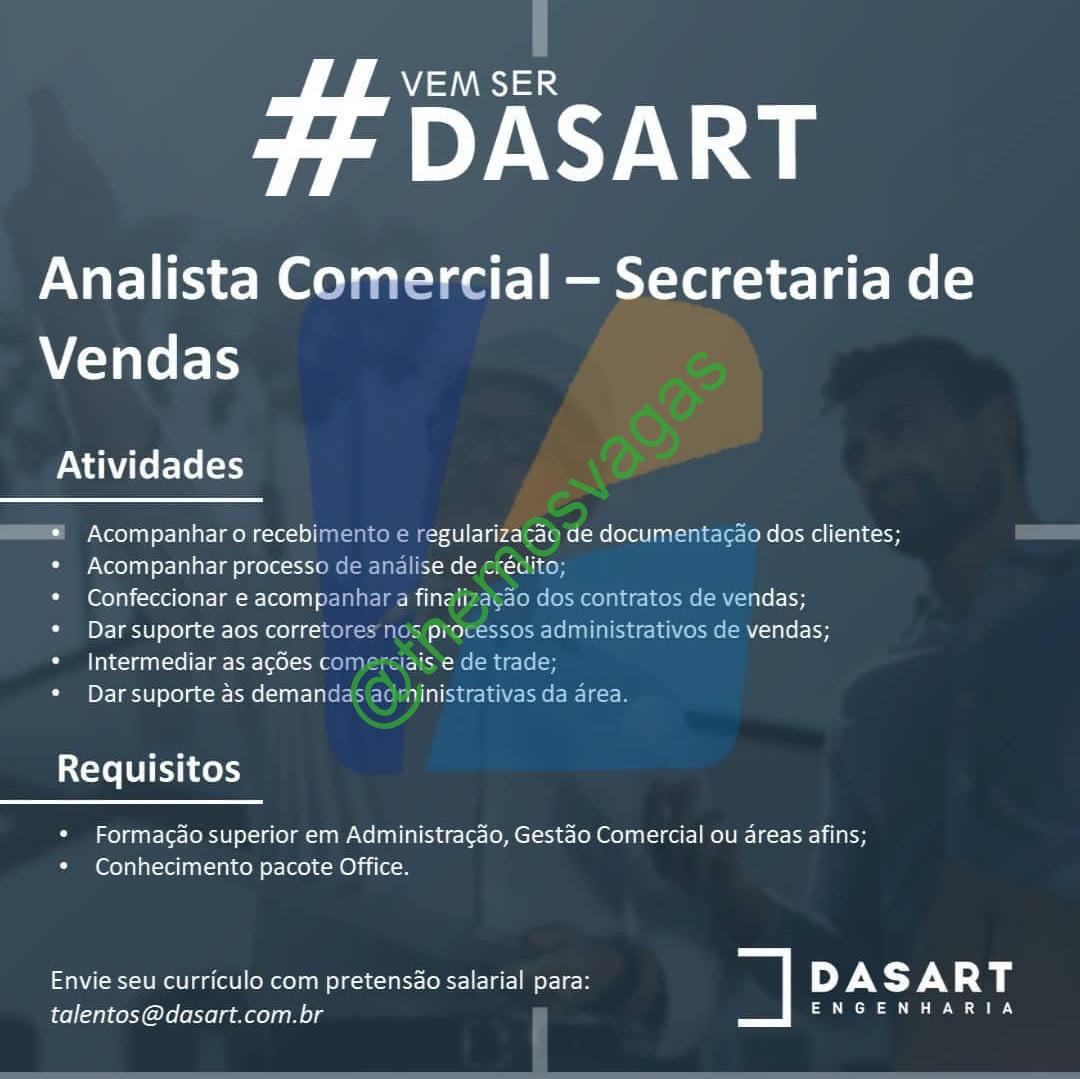 – Interessados(as) e que atendam ao perfil solicitado acima, devem enviar o currículo para o e-mail talentos@dasart.com.br contendo no título/assunto “Analista Comercial – FOR“.