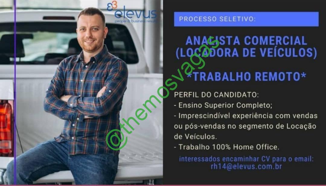– Interessados(as) e que atendam ao perfil solicitado acima, devem enviar o currículo para o e-mail rh14@elevus.com.br, contendo no titulo/assunto “Analista Comercial – FOR