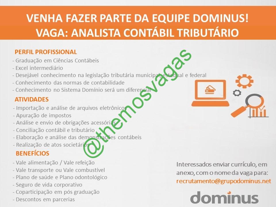 – Interessados(as) e que atendam ao perfil solicitado acima, devem enviar o currículo para o e-mail recrutamento@grupodominus.net , colocando no título “Analista Contábil”.
