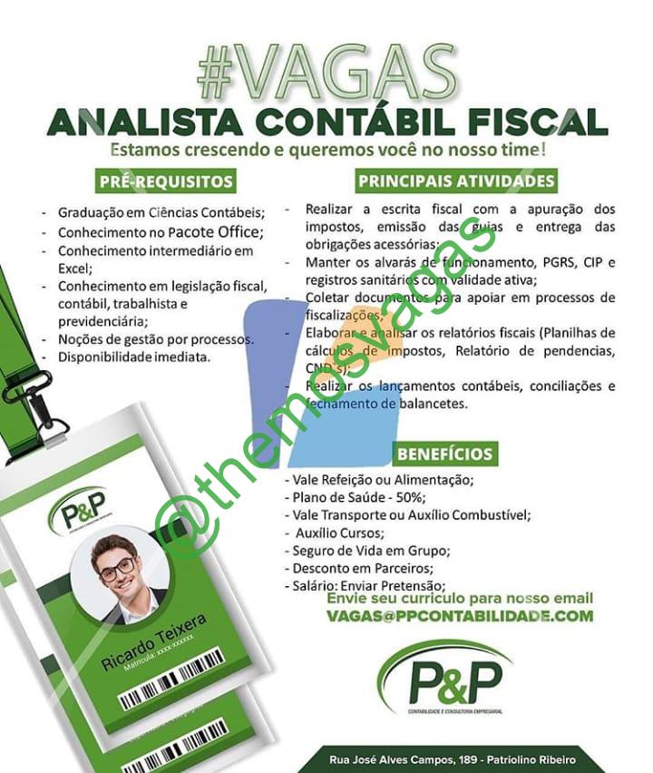 – Interessados(as) e que atendam ao perfil solicitado acima, devem enviar o currículo para o e-mail vagas@ppcontabilidade.com , colocando no título “Analista Contábil Fiscal”.