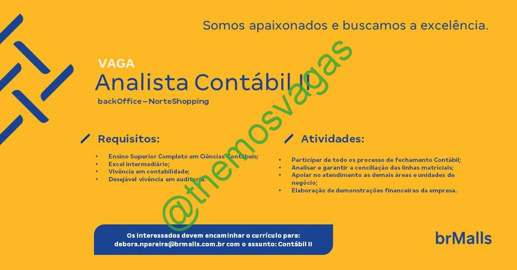 – Interessados(as) e que atendam ao perfil solicitado acima, devem enviar o currículo para o e-mail debora.npereira@brmalls.com.br , colocando no título “Contábil II”.
