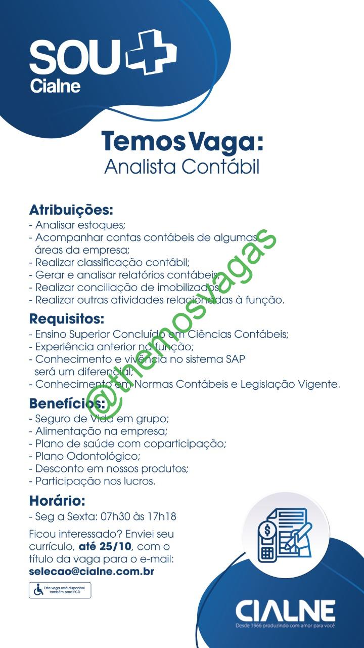 – Interessados(as) e que atendam ao perfil solicitado acima, devem enviar o currículo  para o e-mail selecao@cialne.com.br , contendo no título/assunto “Analista Contábil – FOR“.