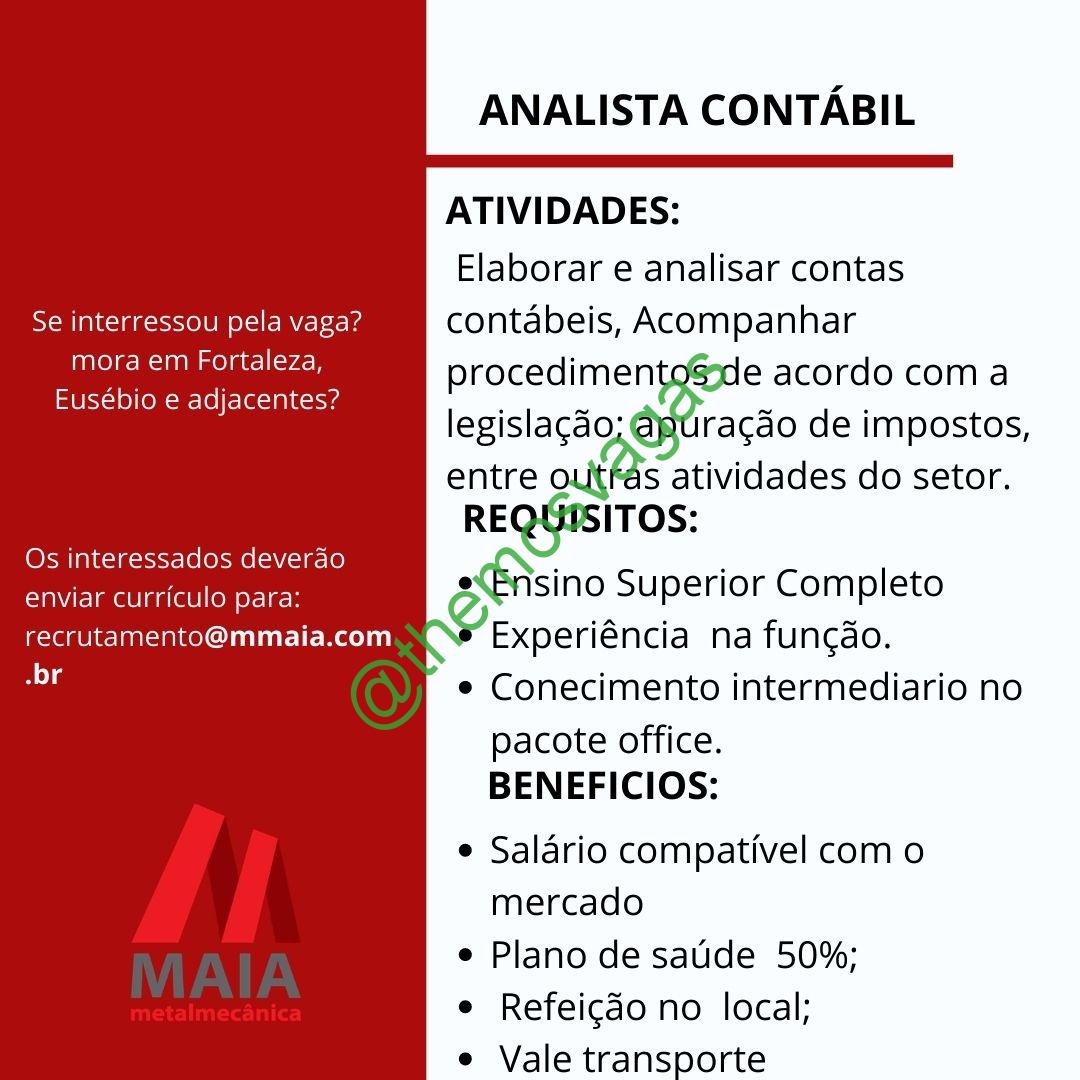 – Interessados(as) e que atendam ao perfil solicitado acima, devem enviar o currículo para o e-mail recrutamento@mmaia.com.br , contendo no título/assunto “Analista Contábil – FOR“.