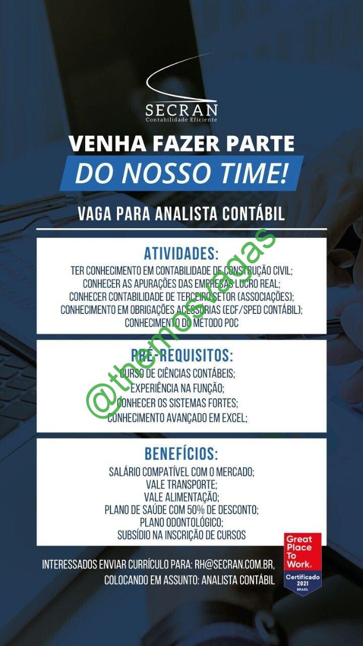 – Interessados(as) e que atendam ao perfil solicitado acima, devem enviar o currículo para o e-mail rh@secran.com.br, contendo no titulo/assunto “Analista Contábil FOR”.