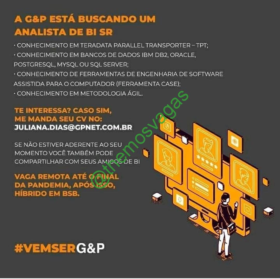 – Interessados(as) e que atendam ao perfil solicitado acima, devem enviar o currículo para o e-mail jualiana.dias@gpnet.com.br, contendo no titulo/assunto “Analista de BI Sr – FOR”.