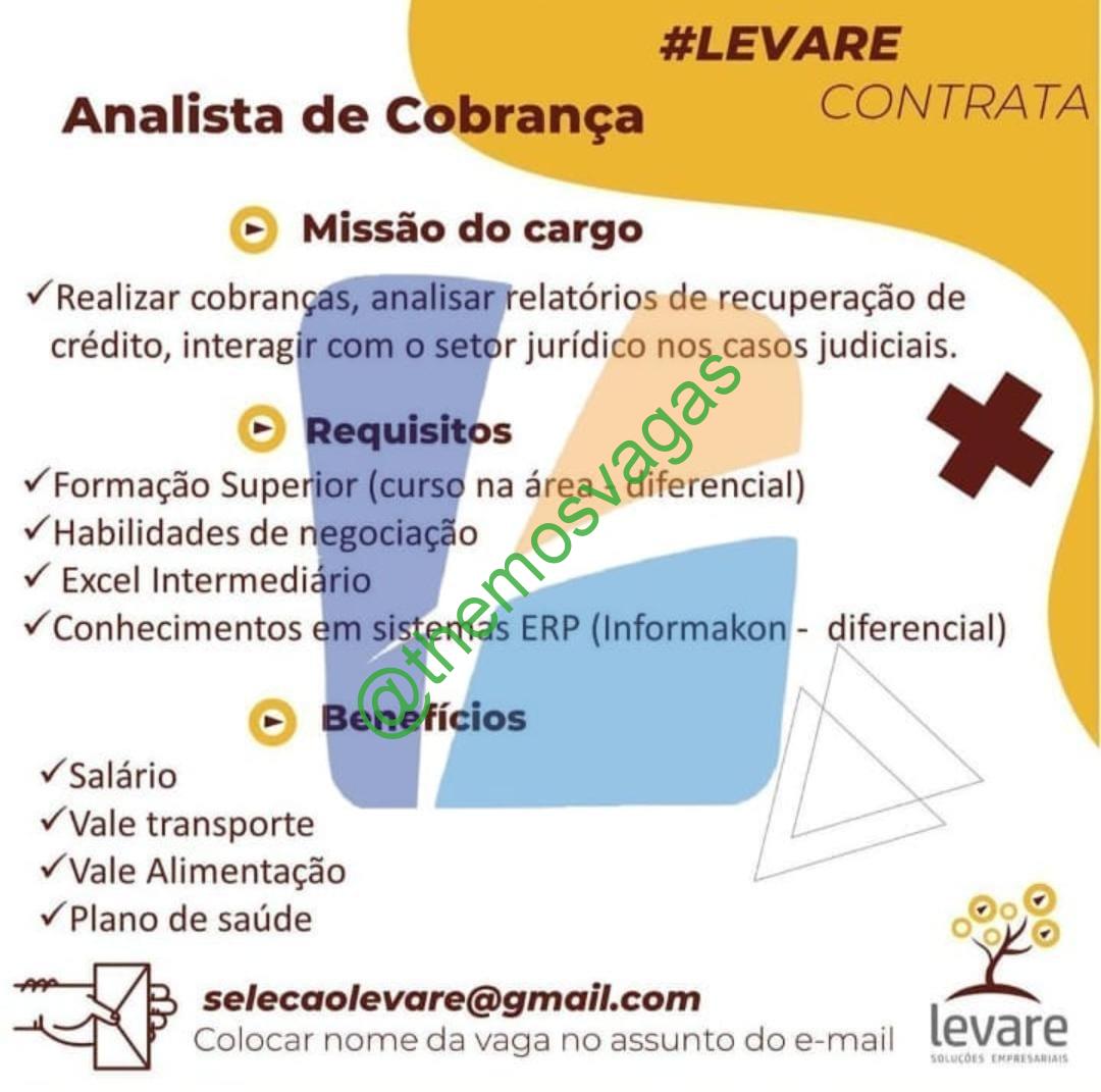 – Interessados(as) e que atendam ao perfil solicitado acima, devem enviar o currículo para o e-mail  selecaolevare@gmail.com, contendo no título/assunto “Analista de Cobrança – THE”.