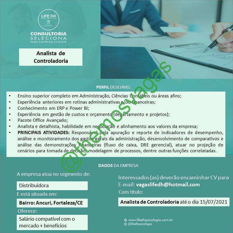 – Interessados(as) e que atendam ao perfil solicitado acima, devem enviar o currículo até 15|07|2021 para o e-mail vagaslifedh@hotmail.com, contendo no titulo/assunto “Analista de Controladoria – FOR”