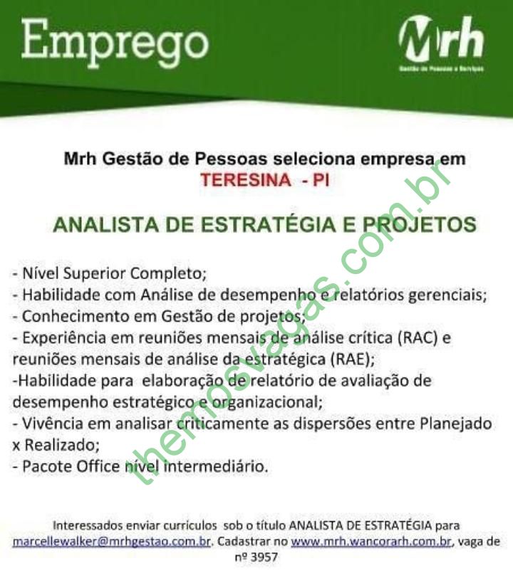 Analista de Estratégia e Projetos em Teresina – PI