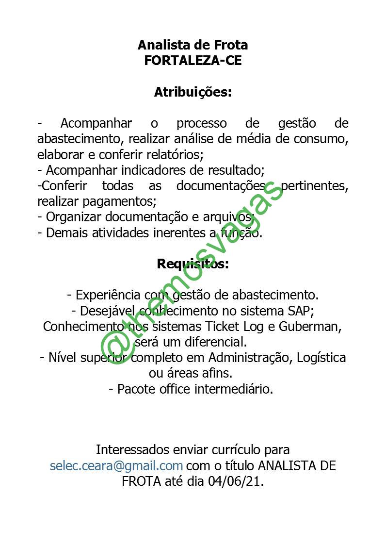 Analista de Frota | Fortaleza – CE | 01 Vaga(s)