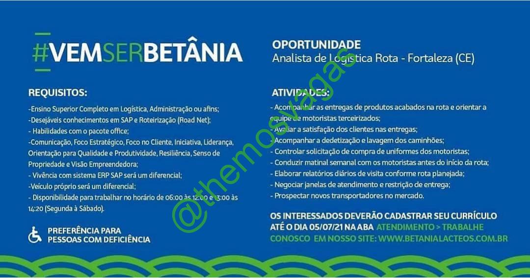 Analista de Logística | Fortaleza – CE | 01 vaga(s)
