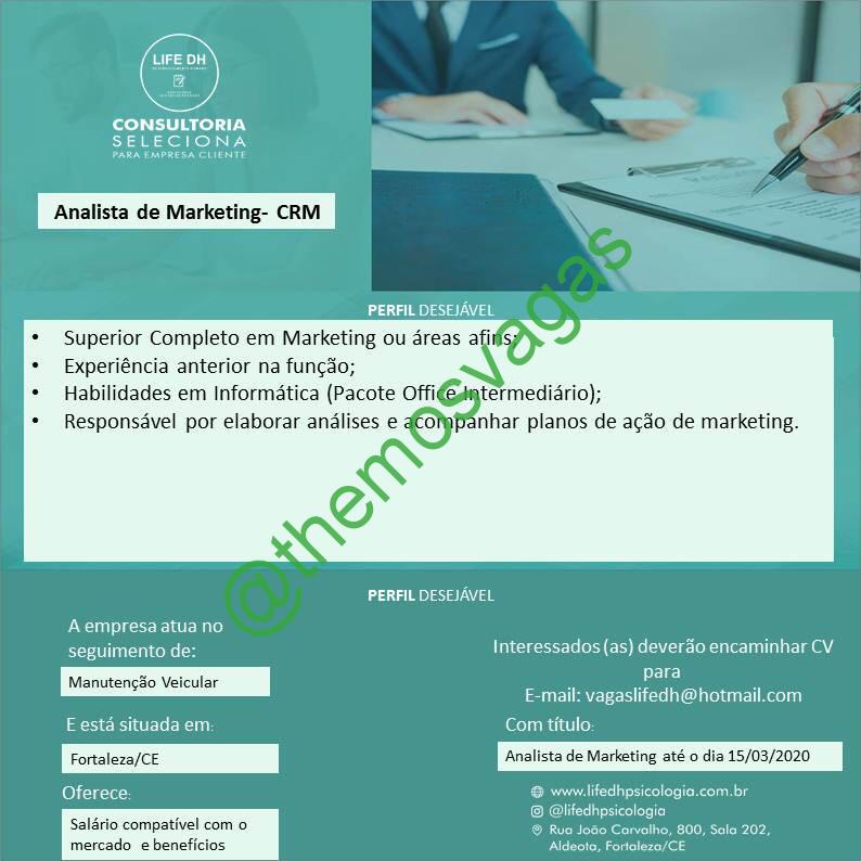 – Interessados(as) e que atendam ao perfil solicitado acima, devem até o dia 15/03/2020 enviar o currículo para o e-mail vagaslifedh@hotmail.com , colocando no título “Analista de Marketing”.