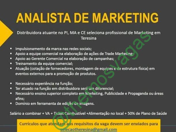 Analista de Marketing / 01 vaga(s) / Teresina – PI
