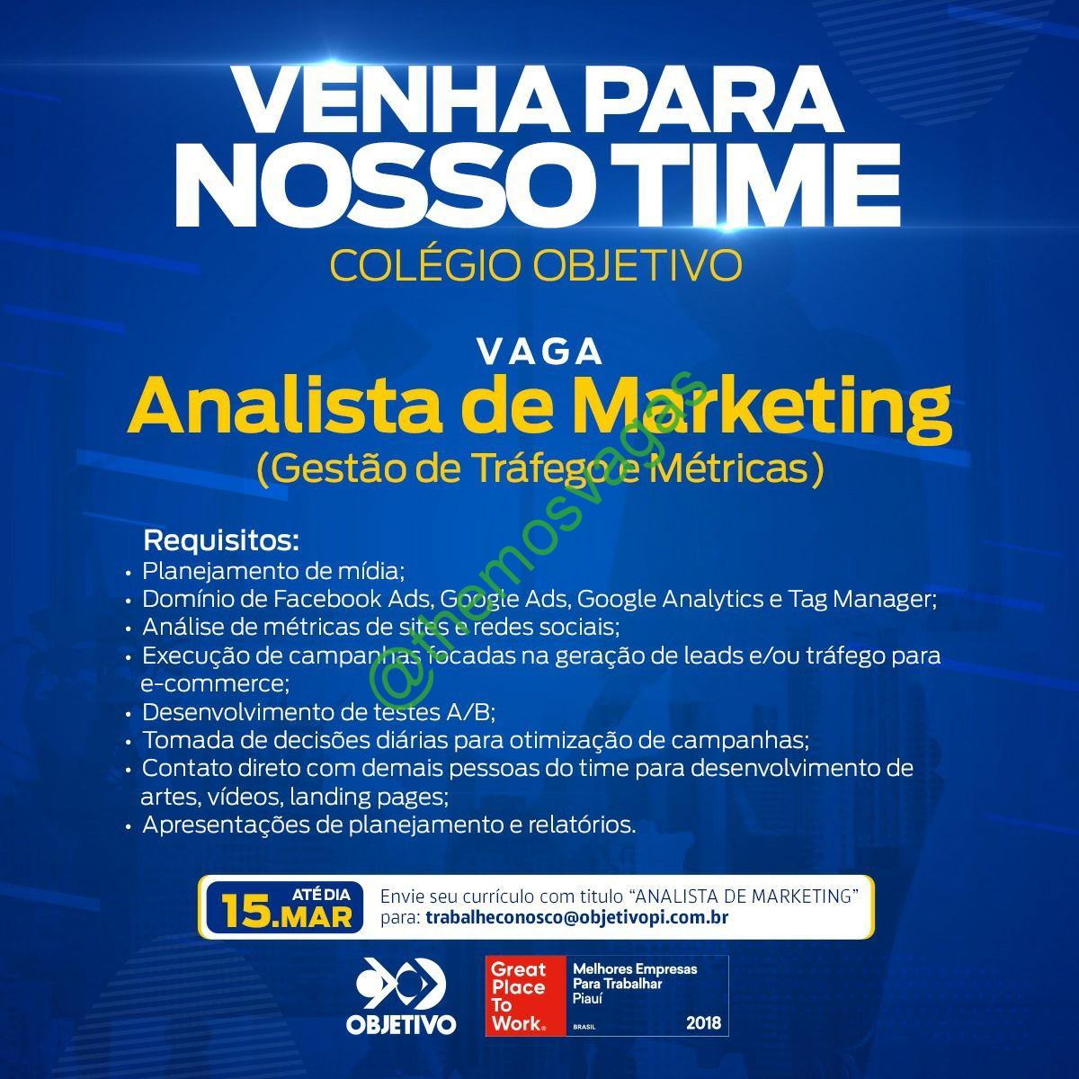 – Interessados(as) e que atendam ao perfil solicitado acima, devem enviar o currículo até 15/03/2021 para o e-mail trabalheconosco@objetivopi.com.br contendo no título/assunto “Analista de Marketing THE