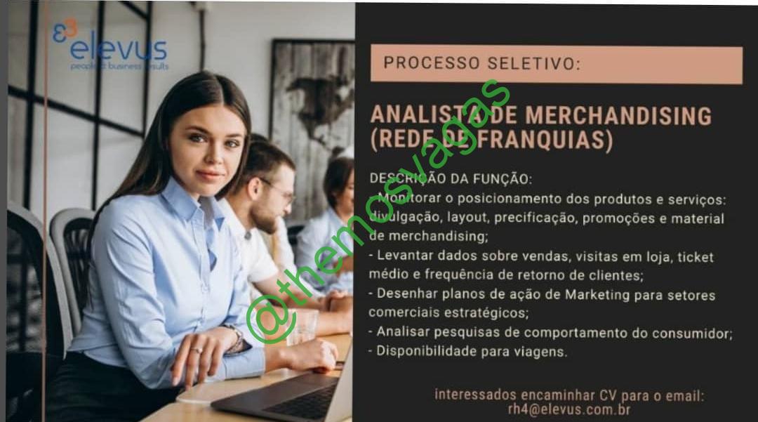 – Interessados(as) e que atendam ao perfil solicitado acima, devem enviar o currículo para o e-mail rh4@elevus.com.br, contendo no titulo/assunto “Analista de Merchandising – FOR