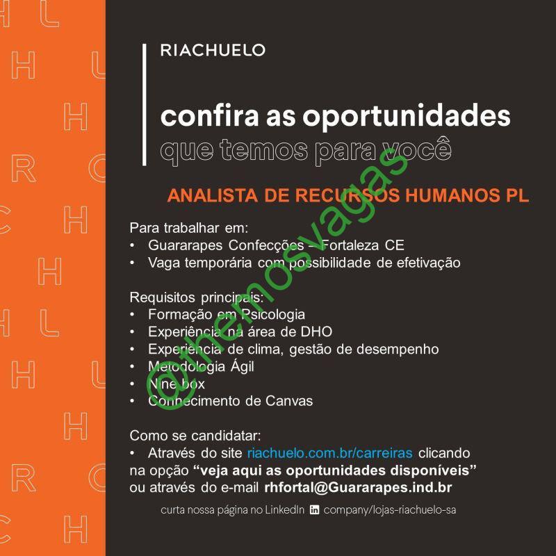 – Interessados(as) e que atendam ao perfil solicitado acima, devem enviar o currículo para o e-mail rhfortal@guararapes.ind.br, contendo no titulo/assunto “Analista de Recursos Humanos – FOR”