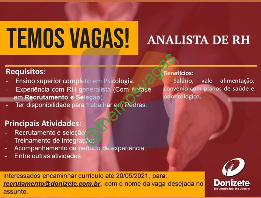 – Interessados(as) e que atendam ao perfil solicitado acima, devem enviar o currículo até 20|05|21 para o e-mail recrutamento@donizete.com.br, contendo no titulo/assunto “Analista de RH – FOR