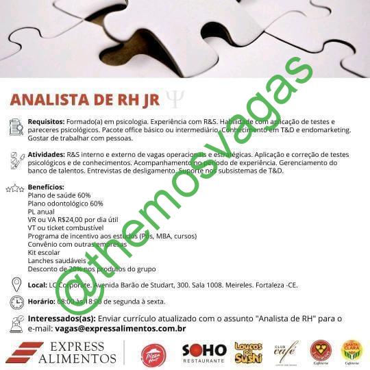 – Interessados(as) e que atendam ao perfil solicitado acima, devem cadastrar o currículo para o e-mail vagas@expressaalimentos.com.br, contendo no titulo/assunto “Analista de RH Jr  – FOR”.