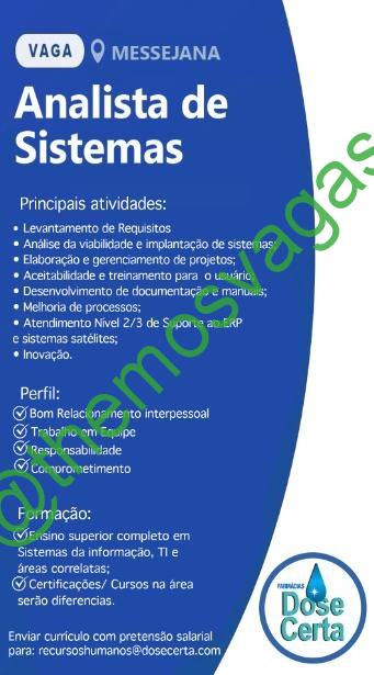 – Interessados(as) e que atendam ao perfil solicitado acima, devem enviar o currículo para o e-mail recursoshumanos@dosecerta.com , colocando no título “Analista de Sistemas”.