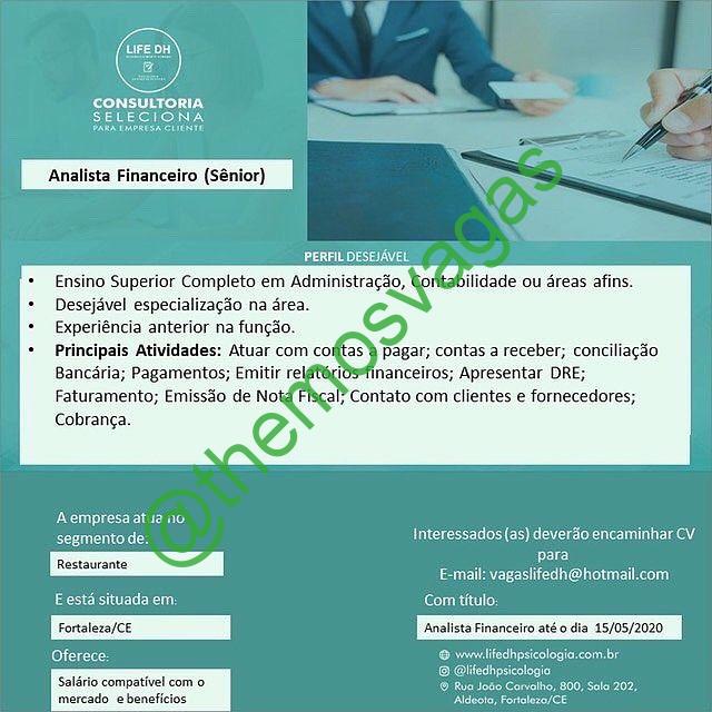 Analista Financeiro (Sênior) / 01 vaga(s) / Fortaleza – CE