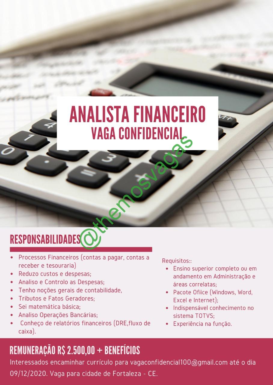 – Interessados(as) e que atendam ao perfil solicitado acima, devem enviar o currículo até 09/12/2020 para o e-mail vagaconfidencial100@gmail.com , contendo no título/assunto “Analista Financeiro – FOR