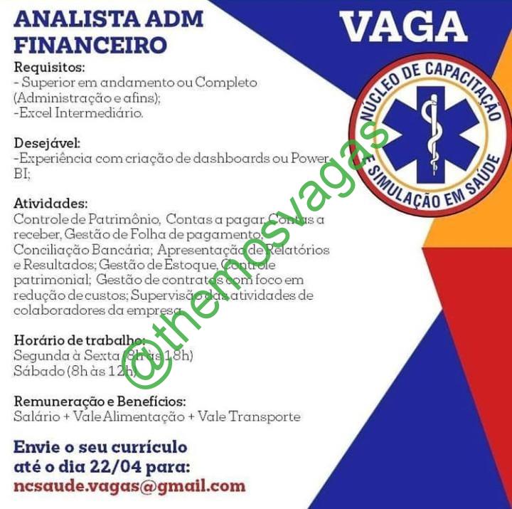 – Interessados(as) e que atendam ao perfil solicitado acima, devem enviar o currículo para o e-mail ncsaude.vagas@gmail.com, contendo no título/assunto “Analista Financeiro – FOR”.