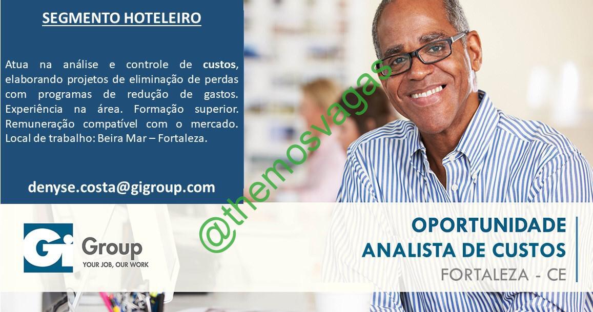 – Interessados(as) e que atendam ao perfil solicitado acima, devem enviar o currículo  para o e-mail denyse.costa@gigroup.com, contendo no titulo/assunto “Analista Custos – FOR”.