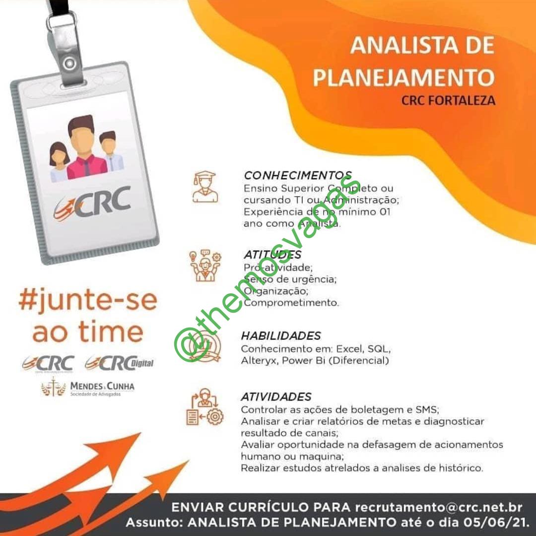 – Interessados(as) e que atendam ao perfil solicitado acima, devem enviar o currículo até 05|06|2021 para o e-mail recrutamento@crc.net.br, contendo no titulo/assunto “Analista Planejamento – FOR