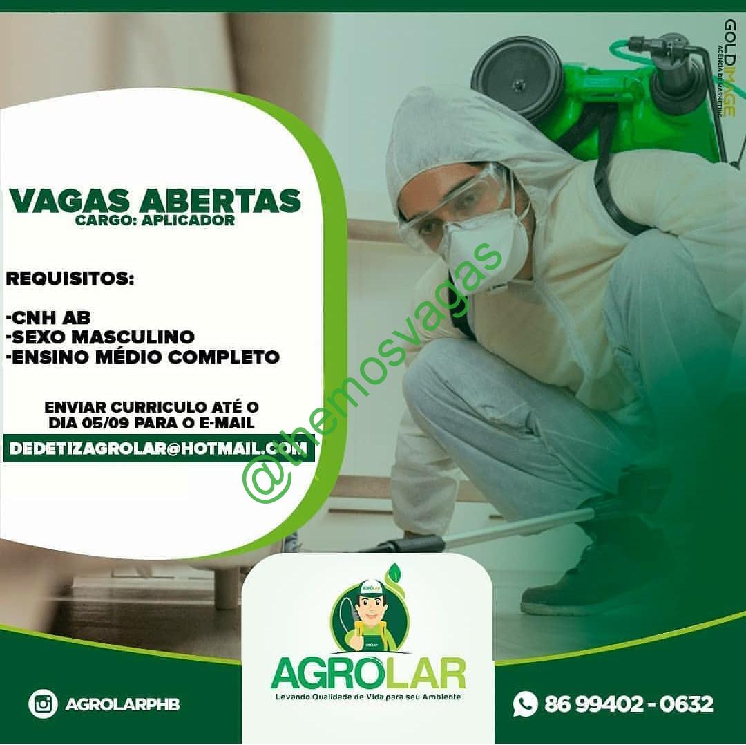 – Interessados(as) e que atendam ao perfil solicitado acima, devem enviar o currículo com foto até 05/09/2020 para o e-mail dedetizagrolar@hotmail.com contendo no título/assunto “Aplicador Sanitário PHB