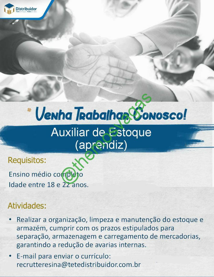– Interessados(as) e que atendam ao perfil solicitado acima, devem enviar o currículo até 05/02/2020 para o e-mail recrutteresina@tetedistribuidor.com.br contendo no título/assunto “Auxiliar de estoque (aprendiz)