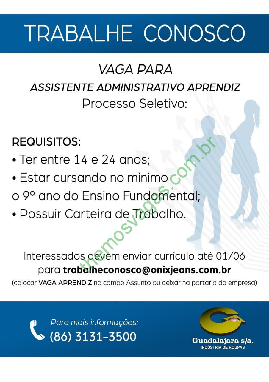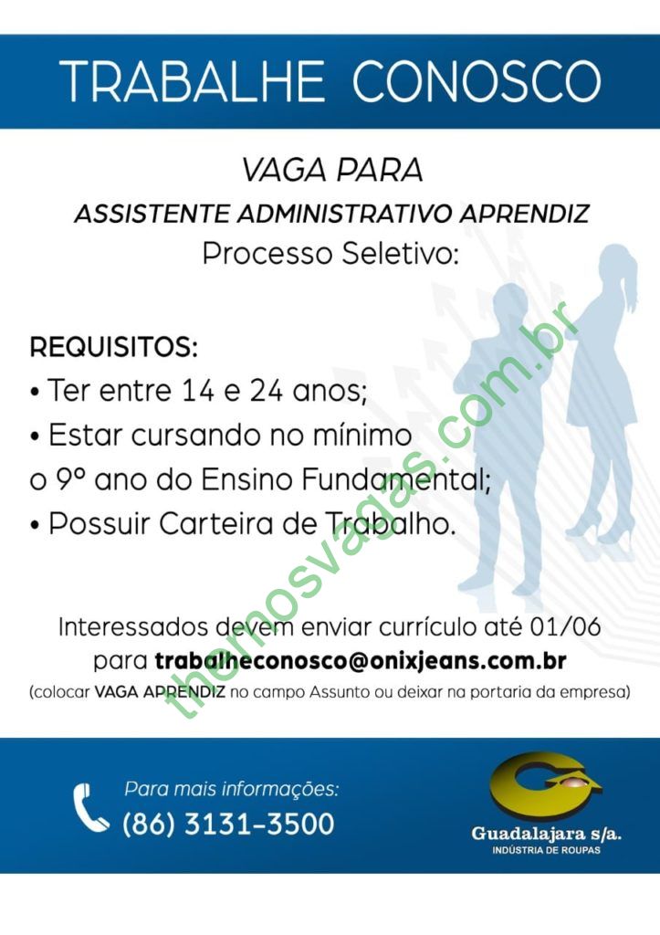 – Interessados(as) e que atendam aos requisitos devem enviar o perfil profissional até o dia 01/06/2019, colocando no título do e-mail “Vaga Aprendiz”, para: trabalheconosco@onixjeans.com.br