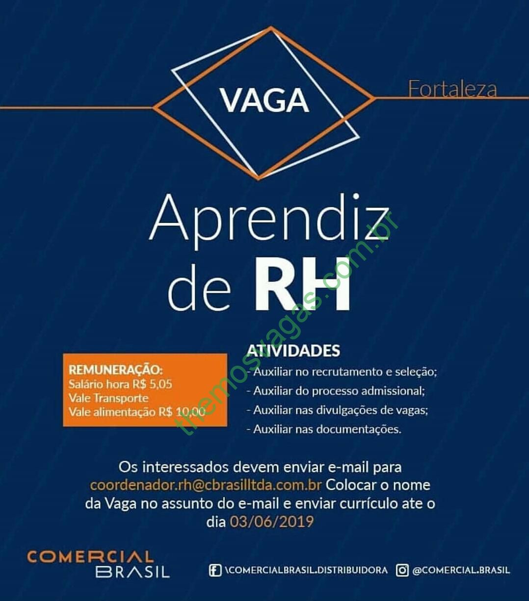 – Interessados(as) e que atendam ao perfil solicitado acima, devem enviar o currículo para o e-mail coordenador.rh@cbrasilltda.com.br até o dia 03/06/2019, colocando no título “Aprendiz de RH”.