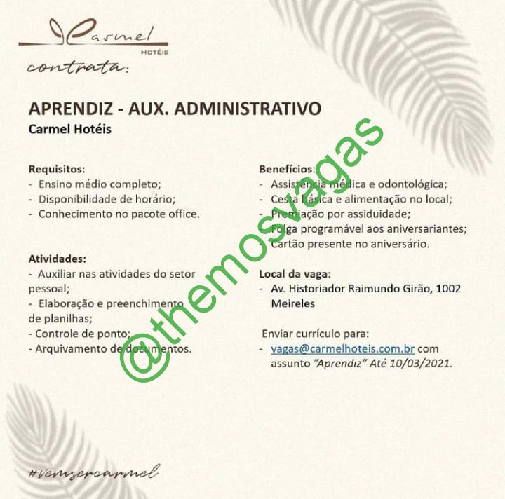 – Interessados(as) e que atendam ao perfil solicitado acima, devem enviar o currículo até 10/03/2021 para o e-mail vagas@carmelhoteis.com.br contendo no título/assunto “Caixa – FOR