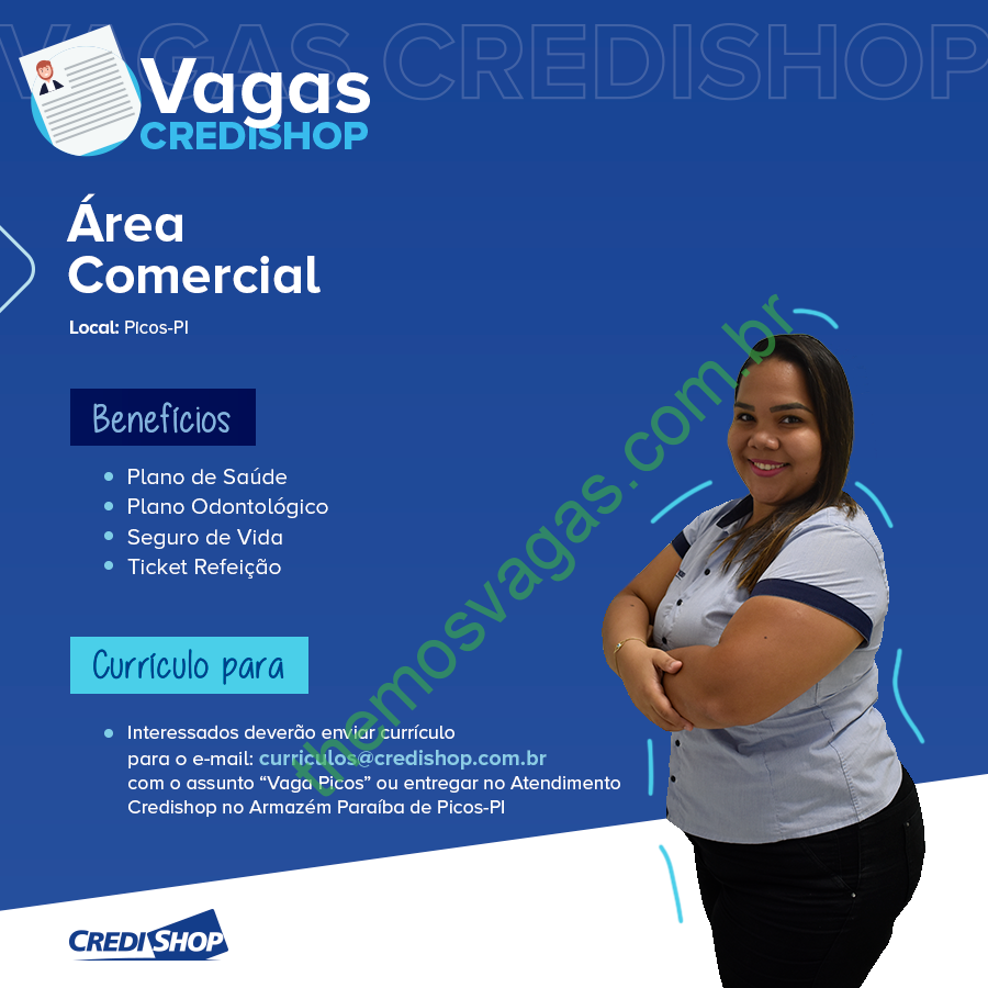 Interessados(as) e que atendam aos requisitos devem enviar o perfil profissional, colocando no título do e-mail “Vaga Picos”, para o e-mail: curriculos@credishop.com.br