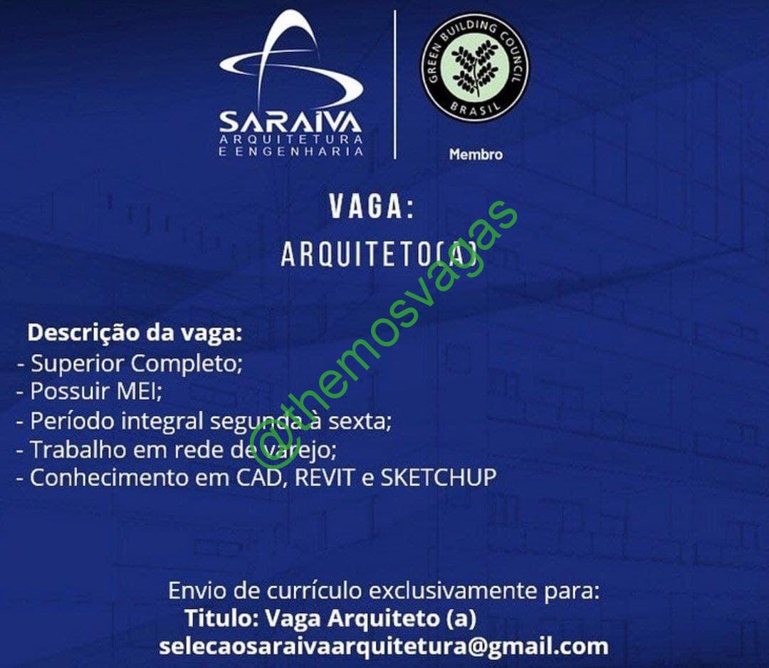 – Interessados(as) e que atendam ao perfil solicitado acima, devem enviar o currículo para e-mail selecaosaraivaarquitetura@gmail.comcontendo no titulo/assunto “Arquiteto(a) – FOR”.