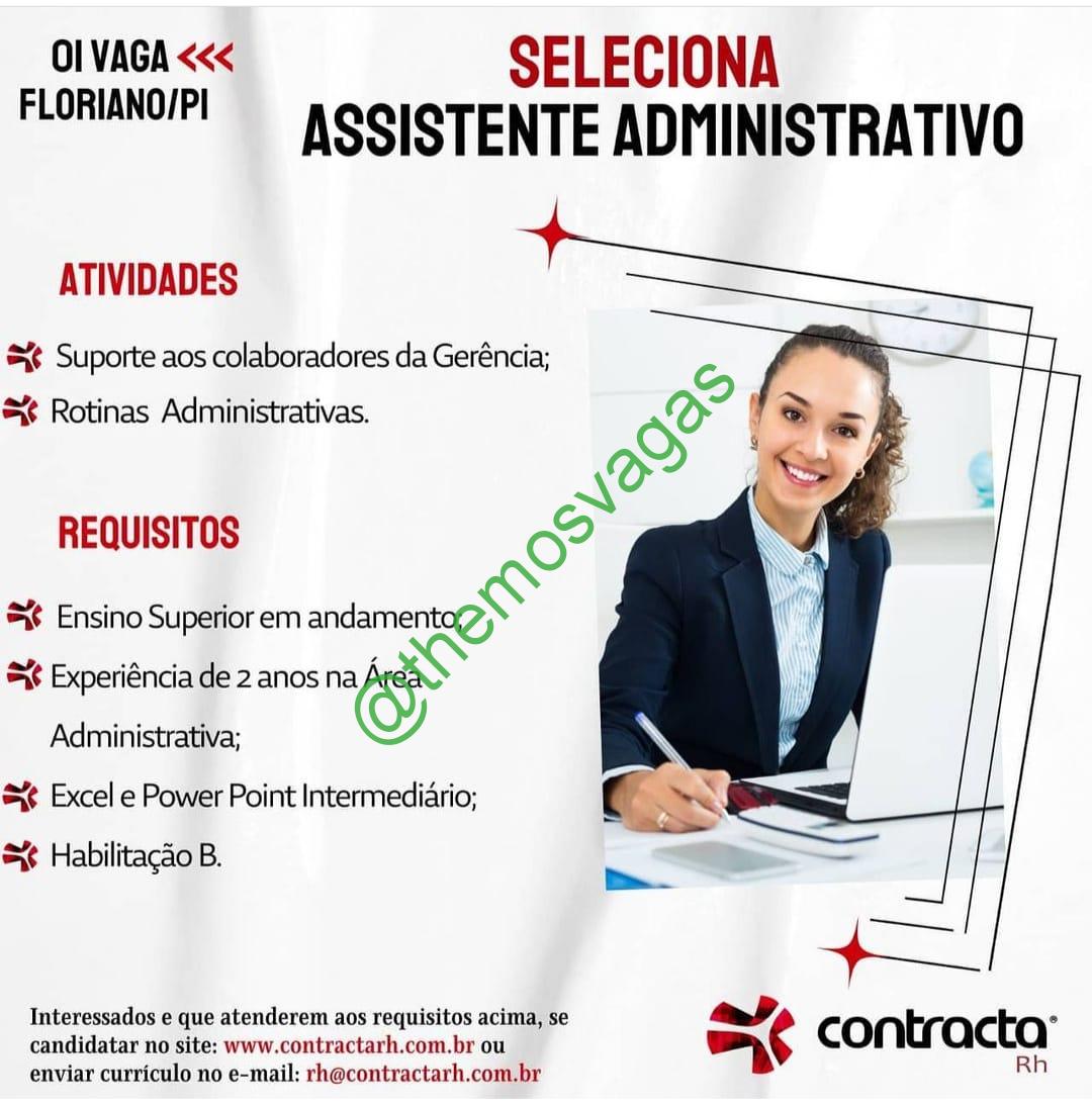 – Interessados(as) e que atendam ao perfil solicitado acima, devem enviar o currículo para o e-mail rh@contractarh.com.br, contendo no título/assunto “Assistente Administrativo – Floriano“.