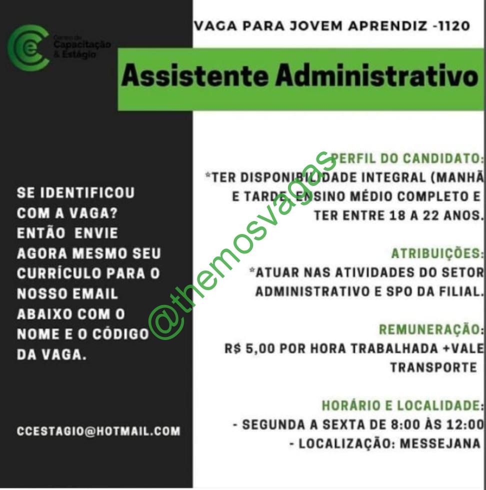 – Interessados(as) e que atendam ao perfil solicitado acima, devem enviar o currículo para o e-mail ccestagio@hotmail.com, contendo no título/assunto “Assistente Administrativo (1120) – FOR“.