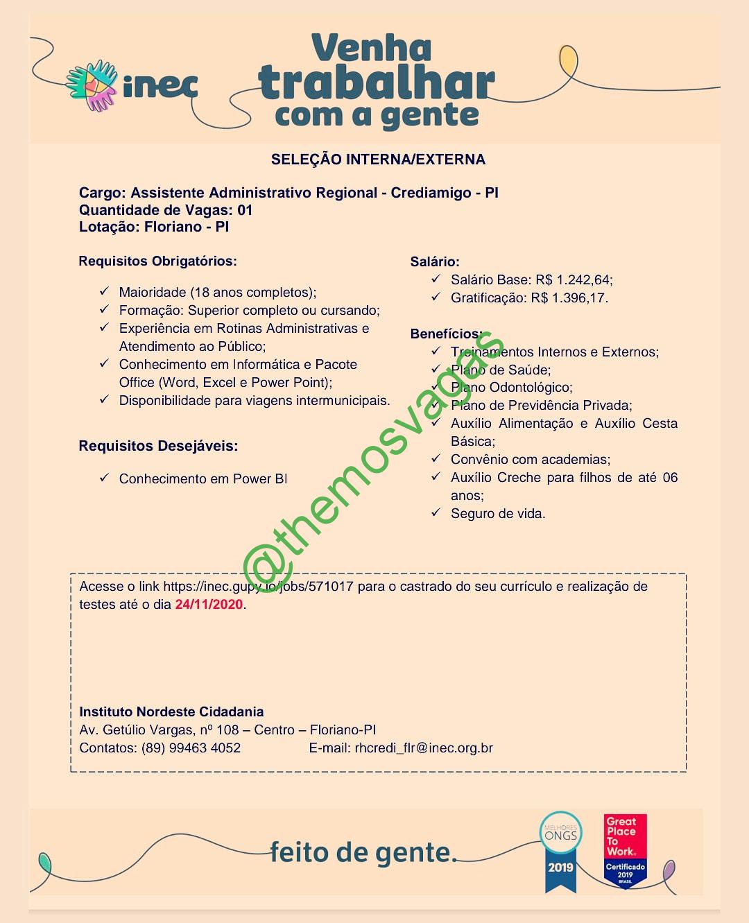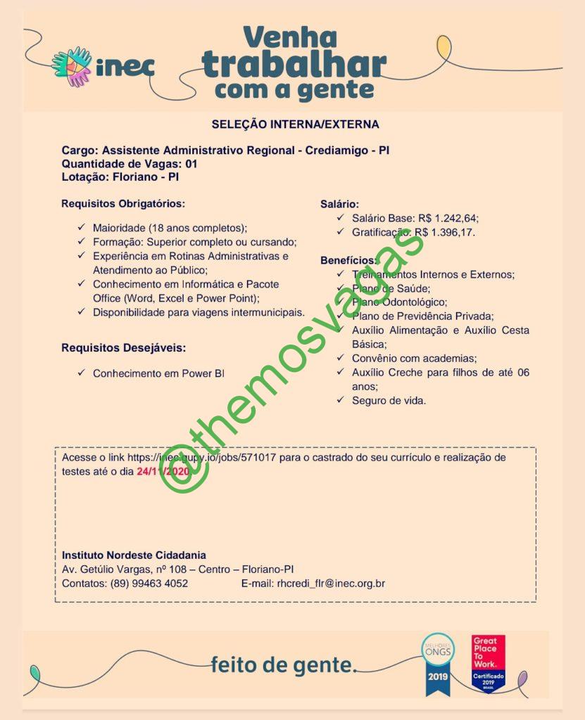 Assistente Administrativo Regional | Floriano – PI | 01 vaga(s)