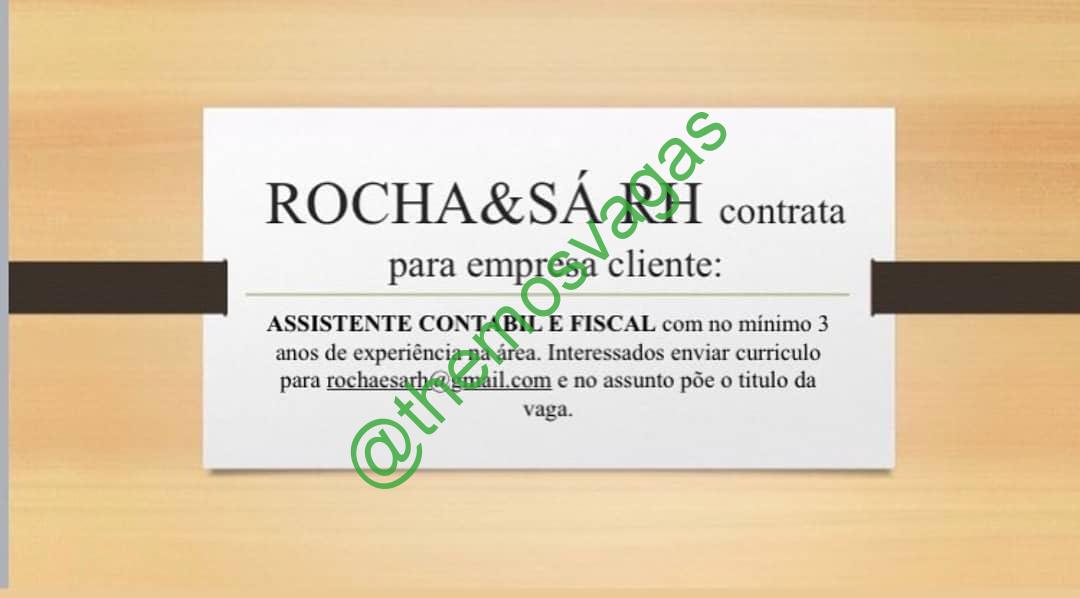 – Interessados(as) e que atendam ao perfil solicitado acima, devem enviar o currículo para o e-mail rochaesarh@gmail.com, contendo no título/assunto “Assistente Contábil Fiscal – FOR”.