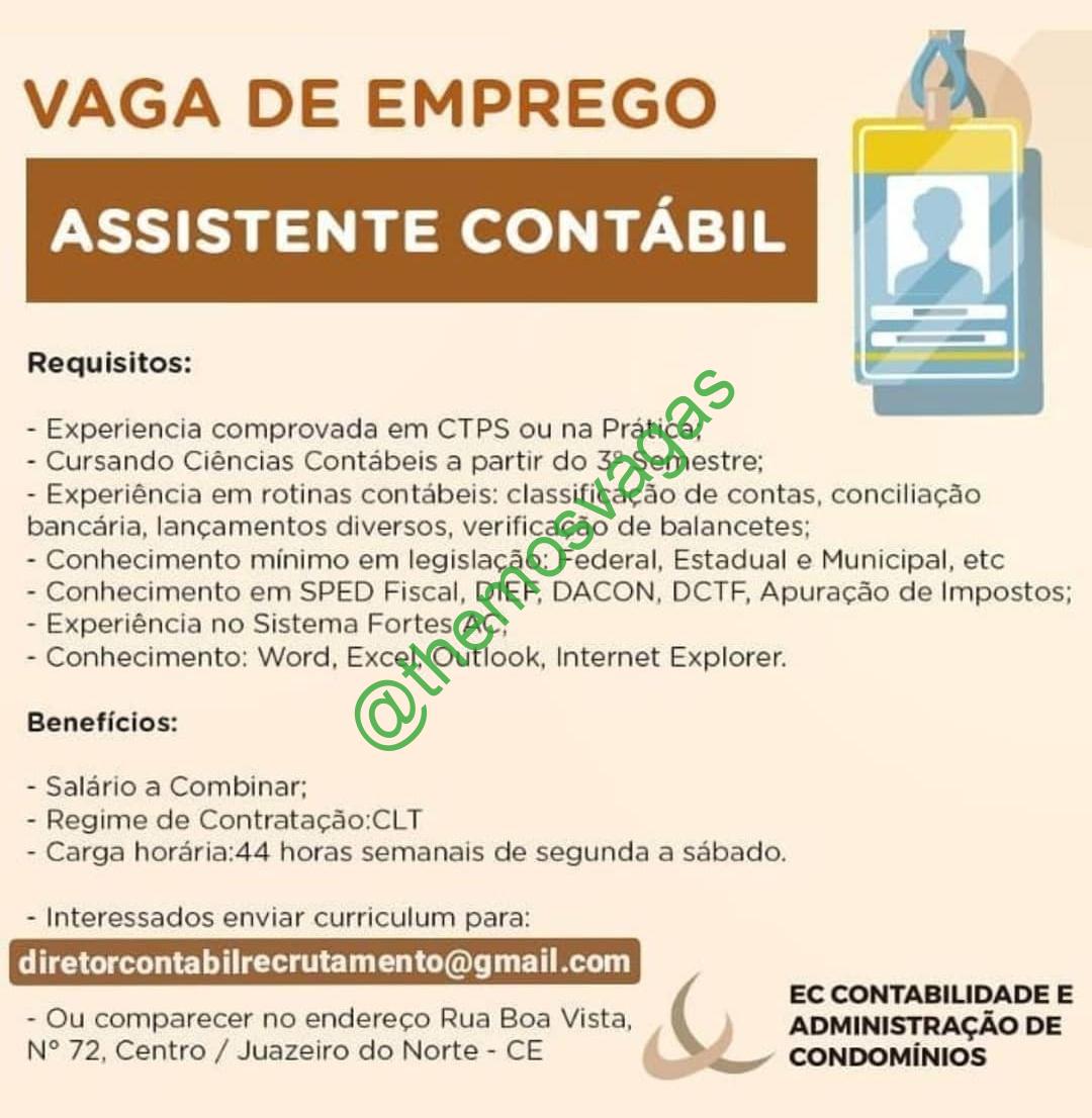 Assistente Contábil | Juazeiro do Norte – CE | 01 vaga(s)