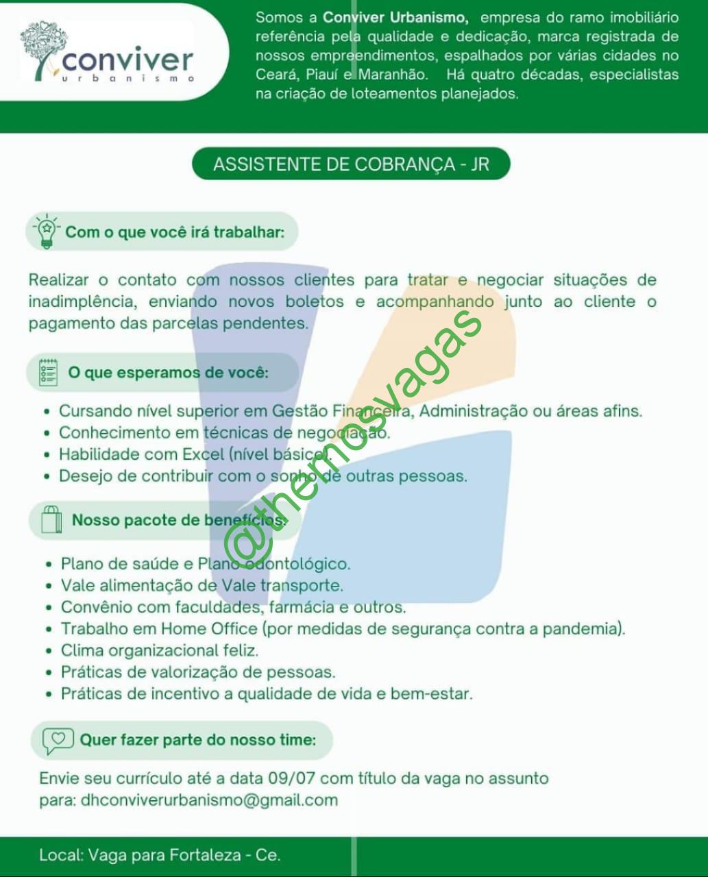 Assistente de Cobrança | Fortaleza – CE | 01 vaga(s)
