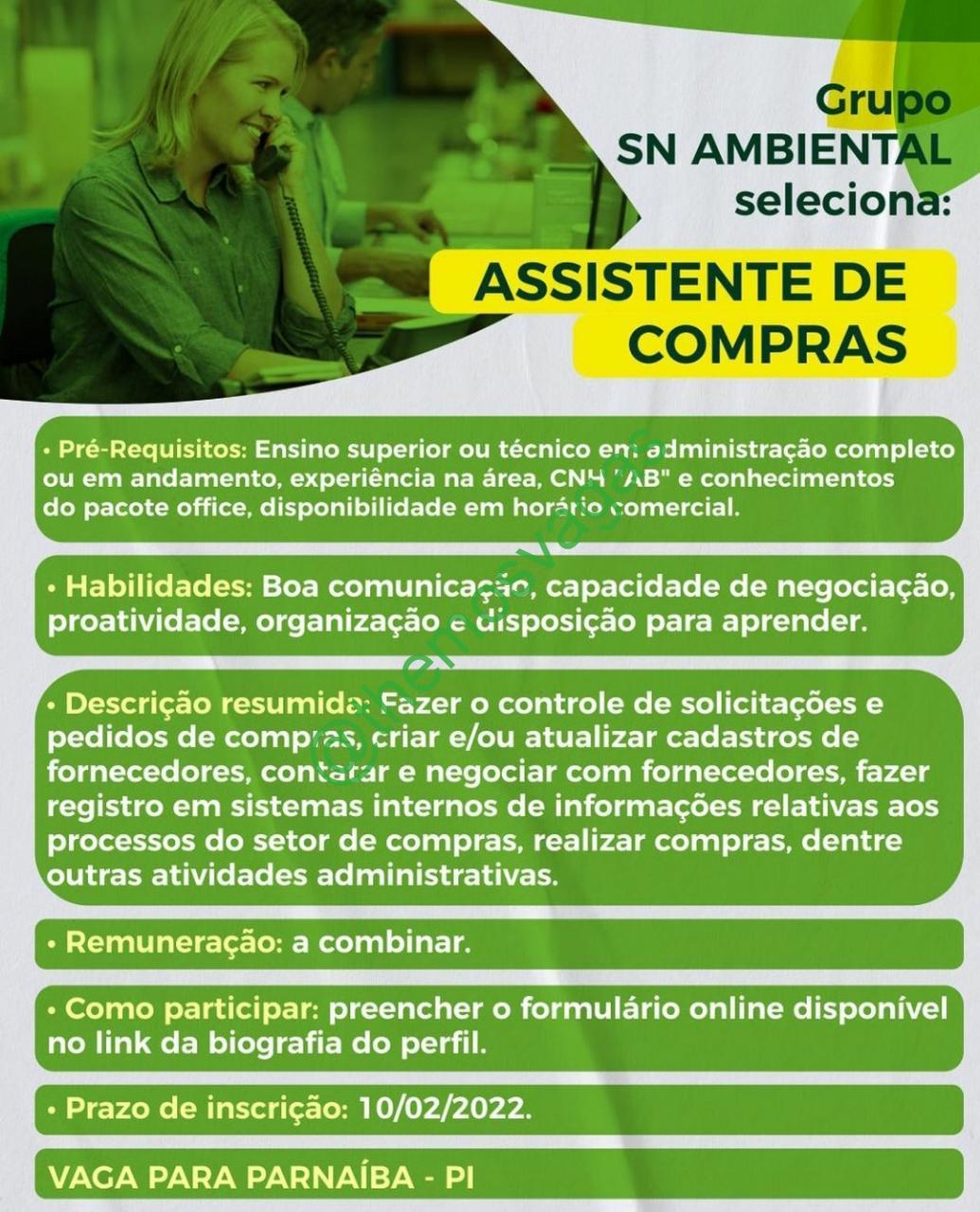 Assistente de Compras | Parnaíba – PI | 01 vaga(s)