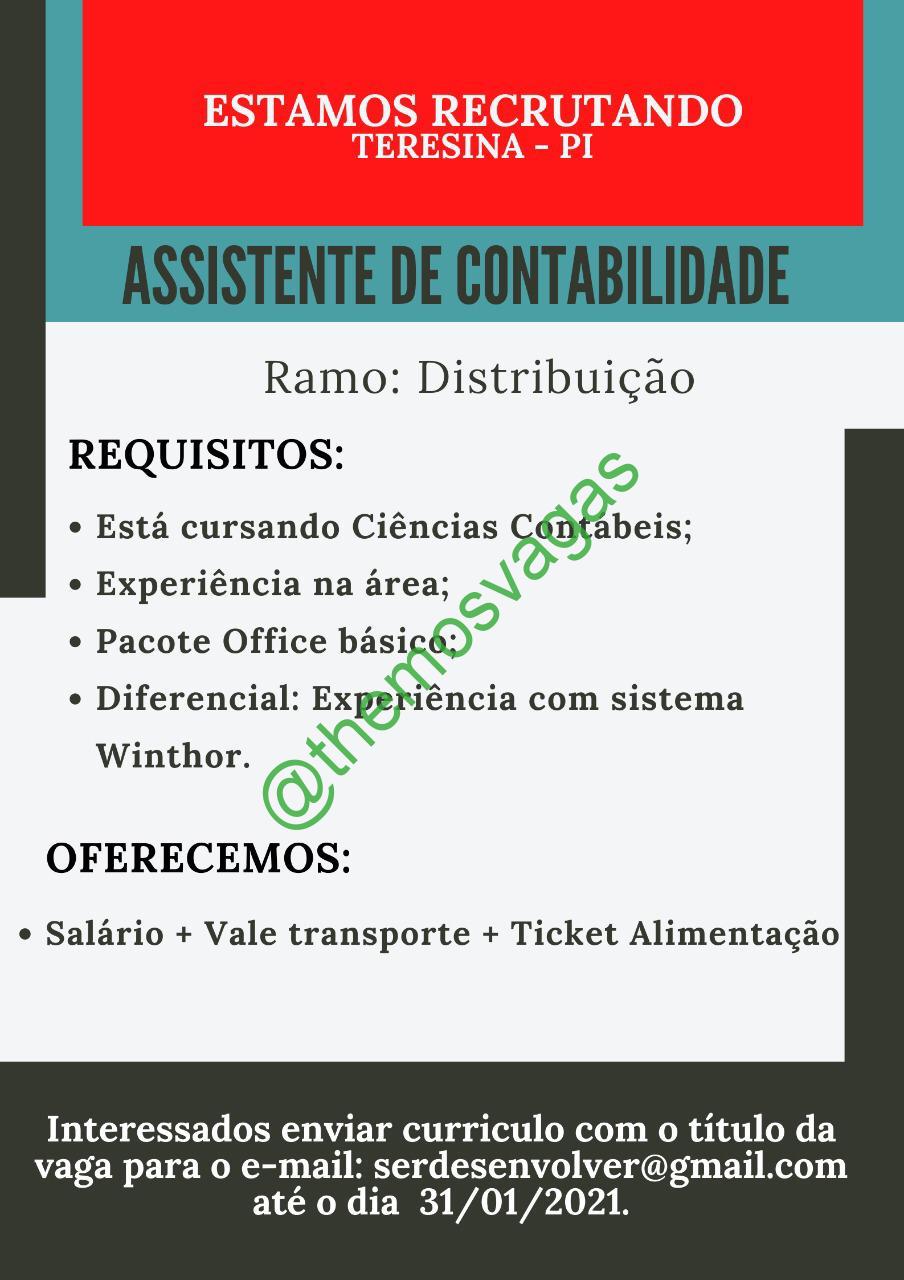 Assistente de Contabilidade | Teresina – PI | 01 vaga(s)